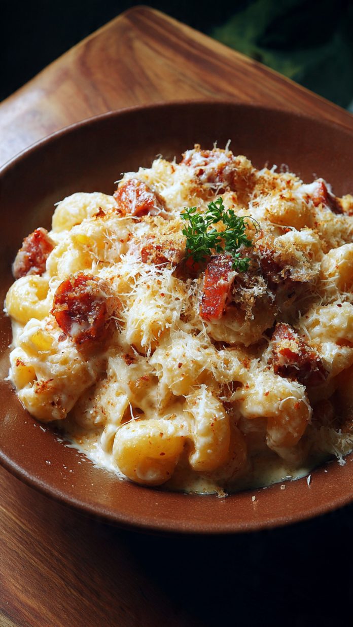- Coloque o macarrão cozido dentro do molho, misture e coloque a mussarela por cima.