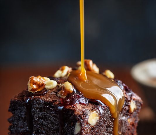 Aprenda com O Cheffe a Brownie de Chocolate com Nozes e Caramelo